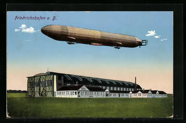 AK Friedrichshafen a. B., Zeppelin über der Halle
