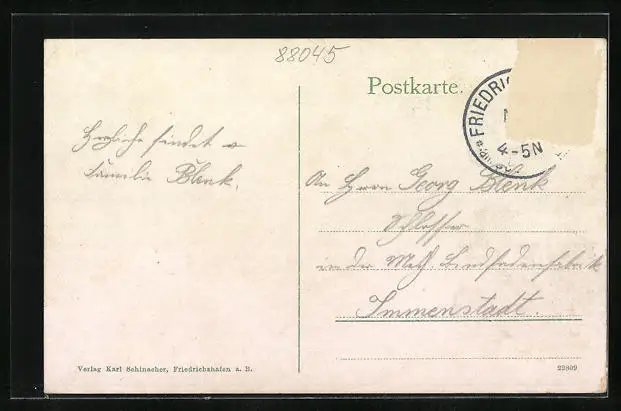 alte Ansichtskarte, gelaufen, Briefmarke entfernt, rückseitig Oberflächenschaden, guter Zustand