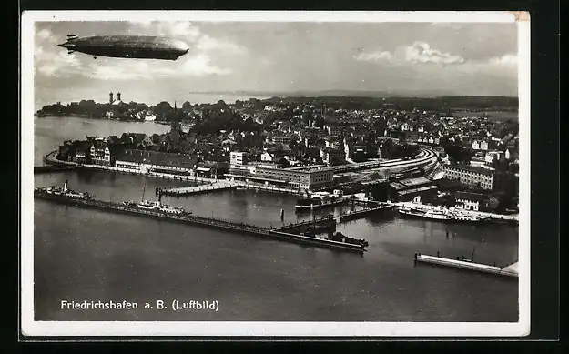 AK Friedrichshafen a. B., Zeppelin über der Stadt