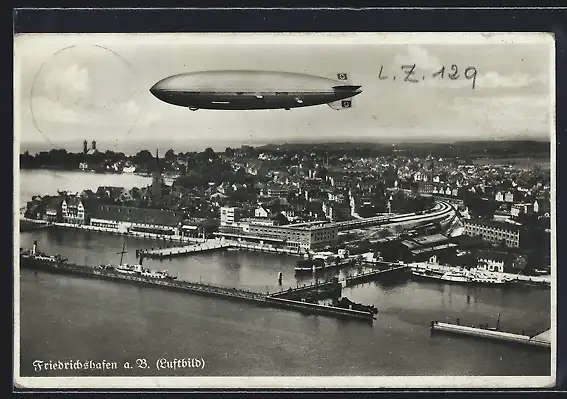 AK Friedrichshafen a. B., Zeppelin über der Stadt