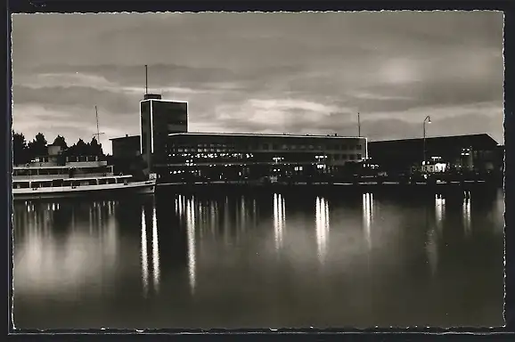 AK Friedrichshafen am Bodensee, Abend am Hafenbahnhof