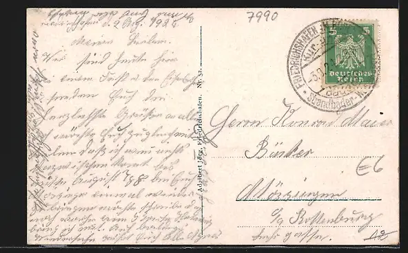 gelaufen 1924, leichte Bugspur oben mittig, guter Zustand