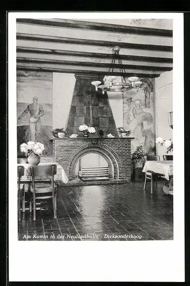 AK Friedrichskoog, Am Kamin in der Neulandhalle, Dieksanderkoog