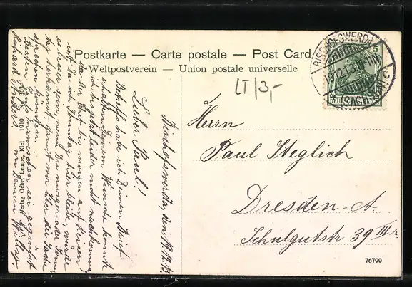 alte Ansichtskarte, gelaufen 1913, guter Zustand