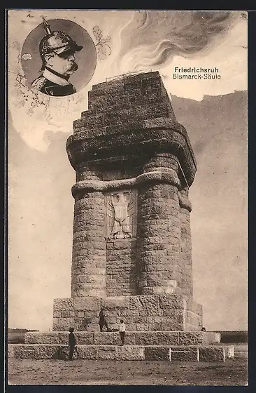 AK Friedrichsruh, Bismarck-Säule mit Porträt Paul von Bismarck