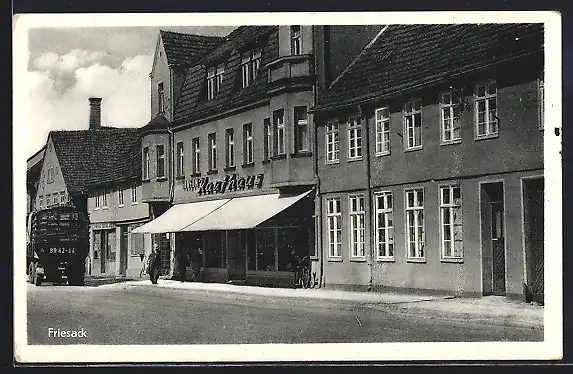 AK Friesack, Strassenpartie am Konsum Kaufhaus