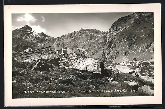 AK Frischmannhütte, Berghütte im Oetztal mit Fundusfeiler und Seespitz