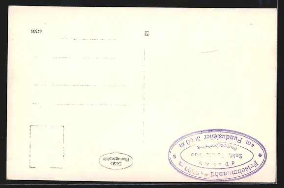 Personenbezogene Daten auf der Rückseite der Karte wurden durch blauen Textmarker unkenntlich gemacht. Die blauen Stellen sind auf die Vorderseite durchgeweicht und wirken sich negativ auf das Postkartenfoto aus