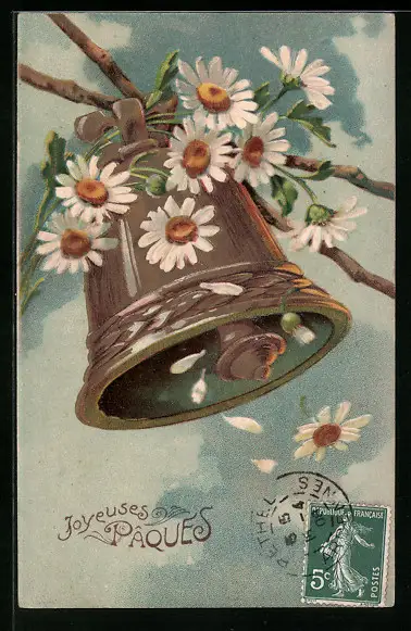 AK Fröhliche Ostern, Glocke mit Margeriten