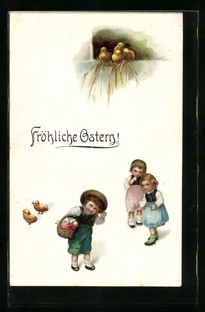 AK Fröhliche Ostern, Kinder mit Osterküken