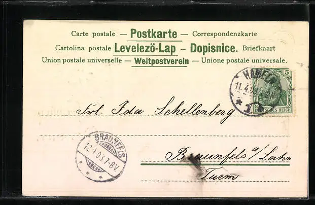 alte Ansichtskarte, gelaufen 1903, guter Zustand