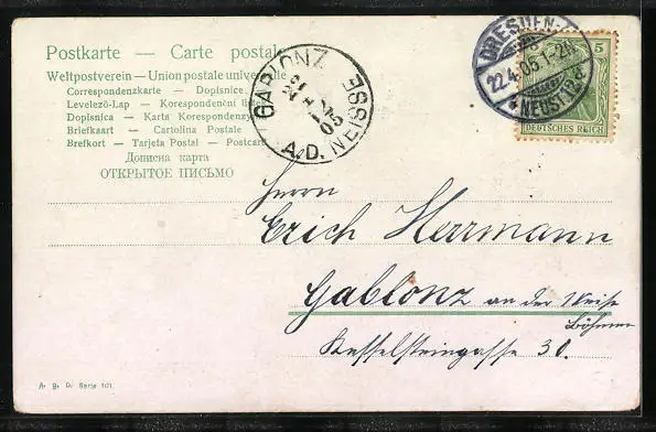 alte Ansichtskarte, gelaufen 1905, guter Zustand