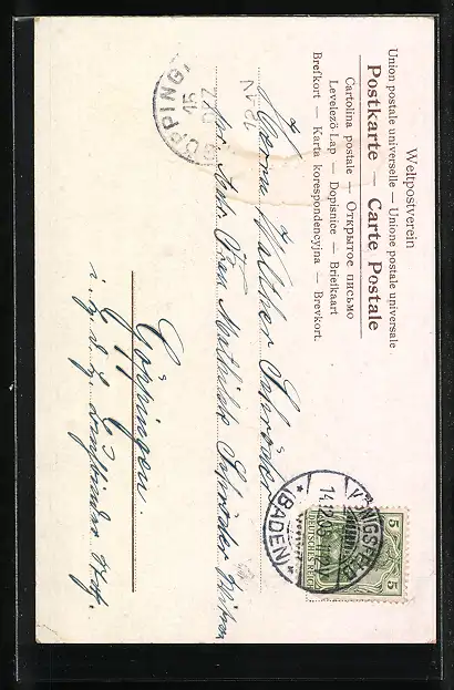 alte Ansichtskarte, gelaufen 1905, guter Zustand