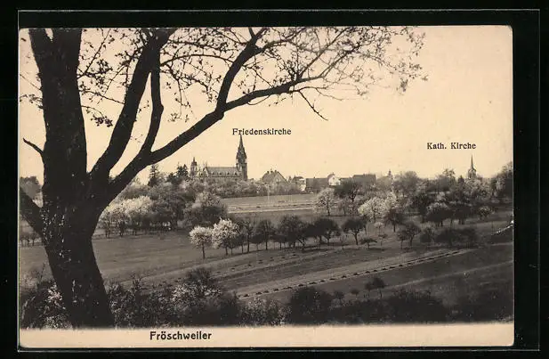 AK Fröschweiler, Ortsansicht mit Kirchen