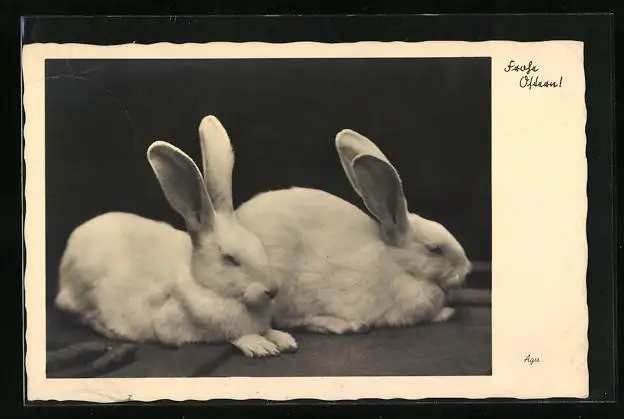 AK Frohe Ostern, Zwei weisse Osterhasen