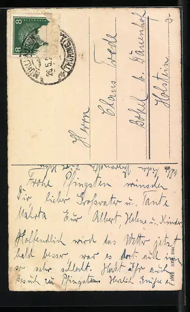 alte Ansichtskarte, gelaufen, Briefmarke entfernt, guter Zustand