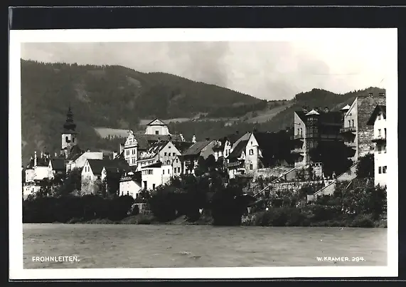 AK Frohnleiten, Ortsansicht mit Uferpartie