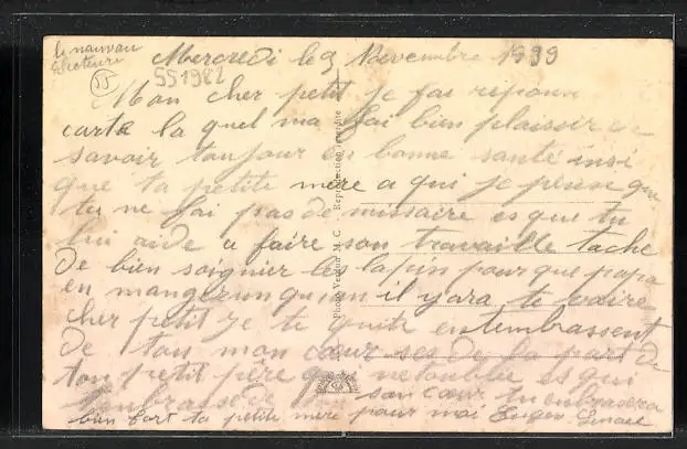 ungelaufen, Rückseite beschrieben 1939, guter Zustand