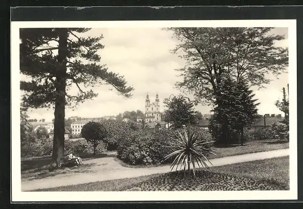 AK Frýdek, Partie im Lustgarten, Kirche