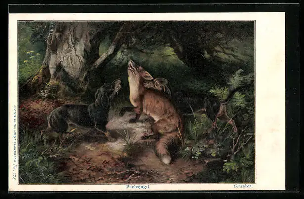 AK Fuchsjagd, Dackel hat einen Fuchs gestellt