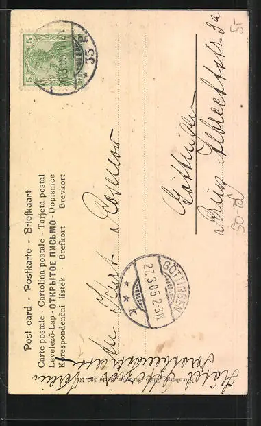 alte Ansichtskarte, gelaufen 1905, Einriss Kante re., guter Zustand