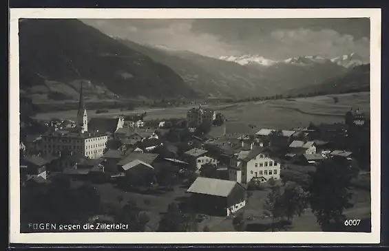 AK Fügen im Zillertal, Teilansicht mit Blick ins Tal