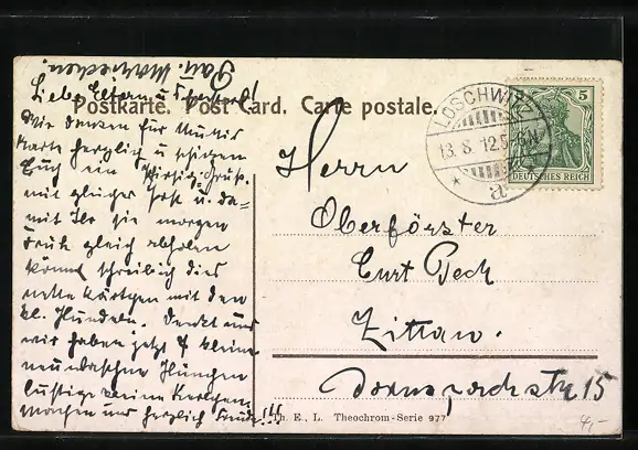 alte Ansichtskarte, gelaufen 1912, Eckknick oben re., guter Zustand