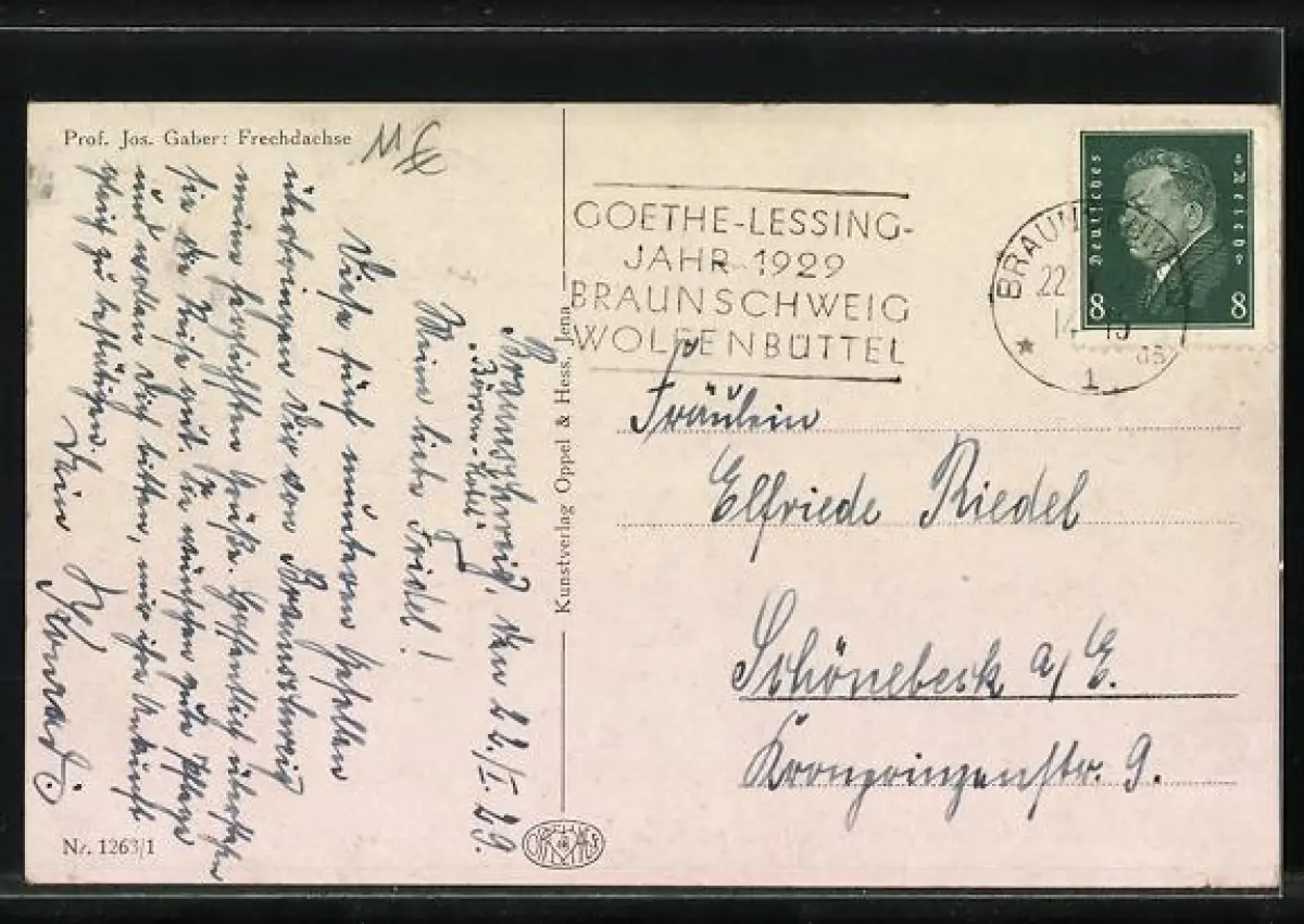 alte Ansichtskarte, gelaufen 1929, Albumspuren unten li. u. re., guter Zustand