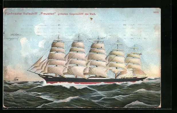 AK Fünfmaster Vollschiff Preussen, grösstes Segelschiff der Welt
