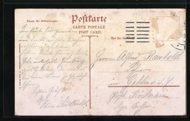 alte Ansichtskarte, gelaufen, Briefmarke entfernt, guter Zustand