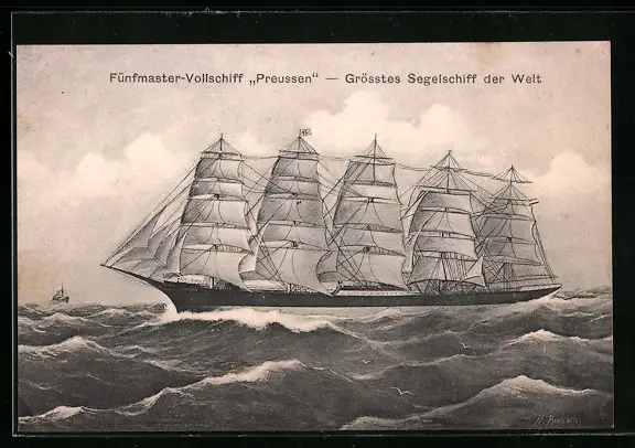 AK Fünfmaster-Vollschiff Preussen, grösstes Segelschiff der Welt, auf See
