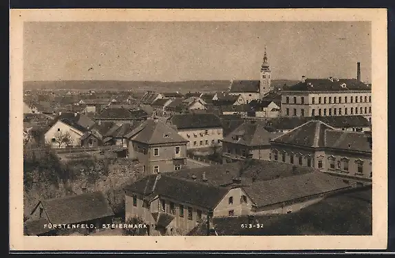 AK Fürstenfeld, Teilansicht mit Kirchturm