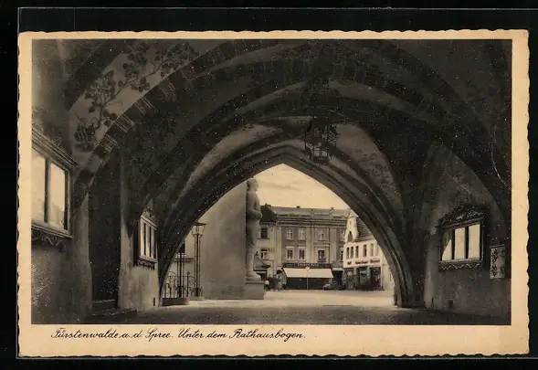 AK Fürstenwalde /Spree, Strassenpartie unter dem Rathausbogen