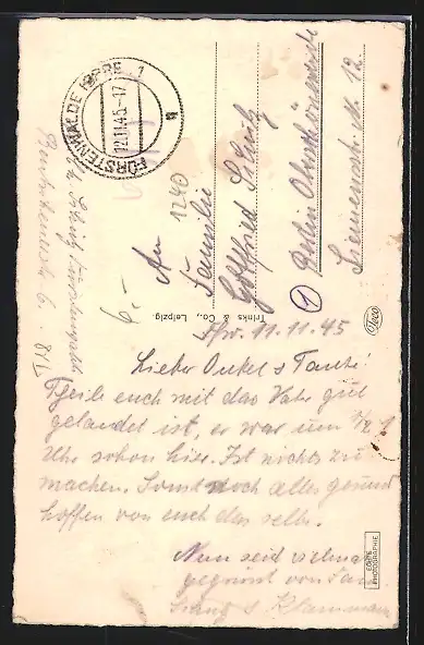 alte Ansichtskarte, gelaufen 1945, guter Zustand