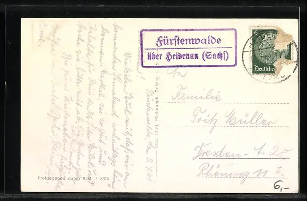 alte Ansichtskarte, gelaufen 1941, Briefmarke entfernt, guter Zustand