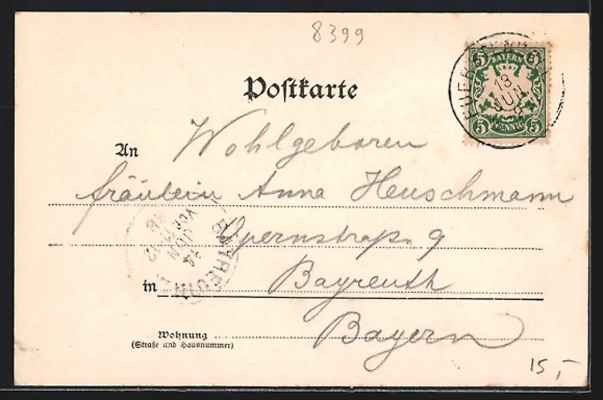 alte Ansichtskarte, gelaufen 1898, guter Zustand