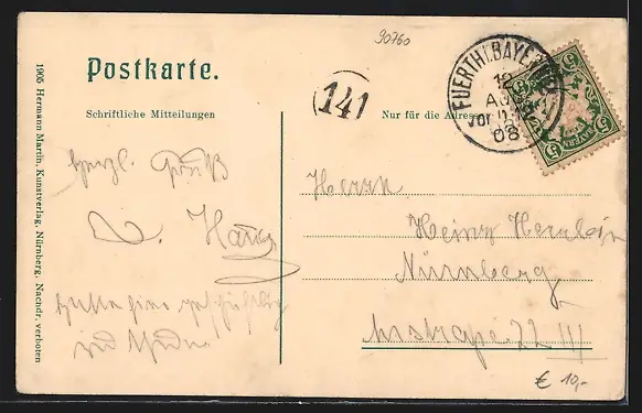 alte Ansichtskarte, gelaufen 1908, guter Zustand
