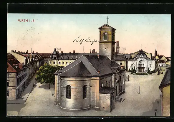 AK Fürth, Strassenansicht mit Kirche