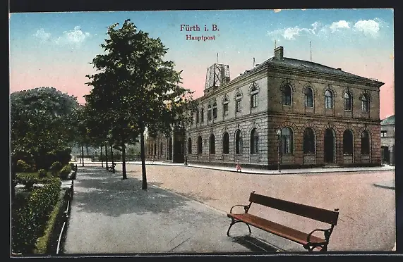 AK Fürth i. B., Hauptpost mit Strassenpartie