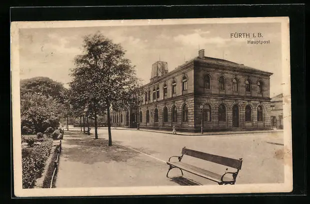 AK Fürth i. B., Hauptpost von den Anlagen gesehen