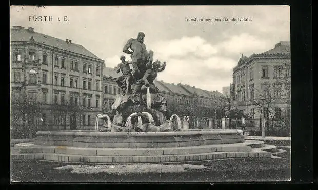 AK Fürth i. B., Kunstbrunnen am Bahnhofsplatz