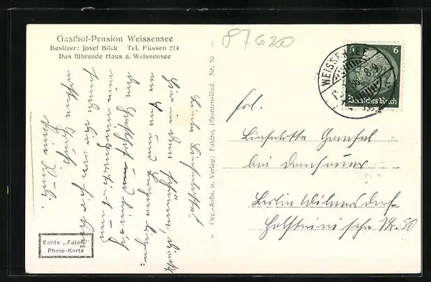 AK Füssen /Allgäu, Gasthof Pension Weissensee
