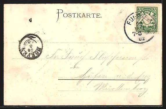 alte Ansichtskarte, gelaufen 1902, guter Zustand