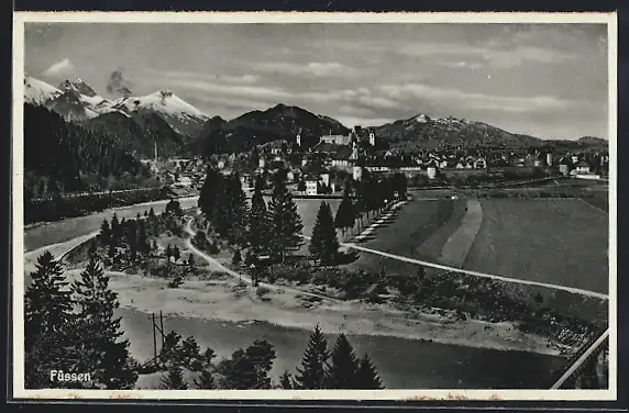 AK Füssen, Gesamtansicht aus der Vogelschau
