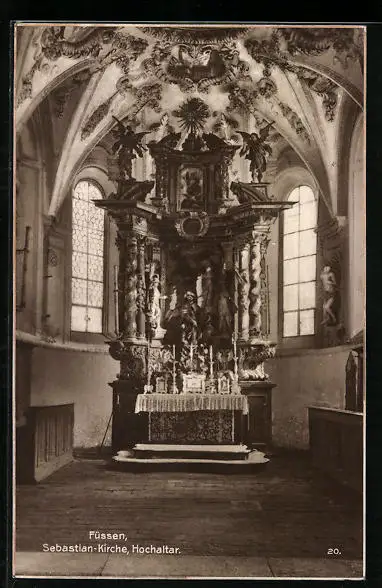 AK Füssen, Hochaltar in der Sebastian-Kirche