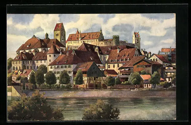 AK Füssen /Lech, Ortsansicht vom Wasser aus