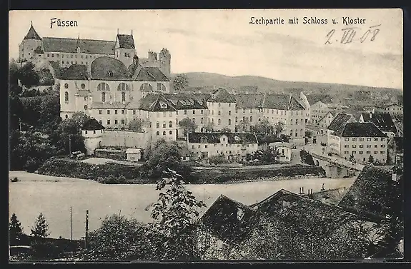 AK Füssen, Lechpartie mit Schloss u. Kloster