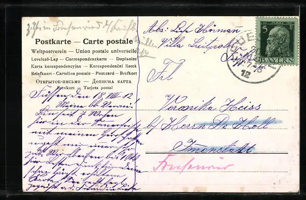 alte Ansichtskarte, gelaufen 1912, guter Zustand