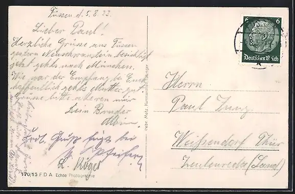 alte Ansichtskarte, gelaufen 1933, guter Zustand