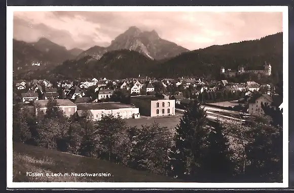 AK Füssen a. Lech, Ortsansicht mit Neuschwanstein